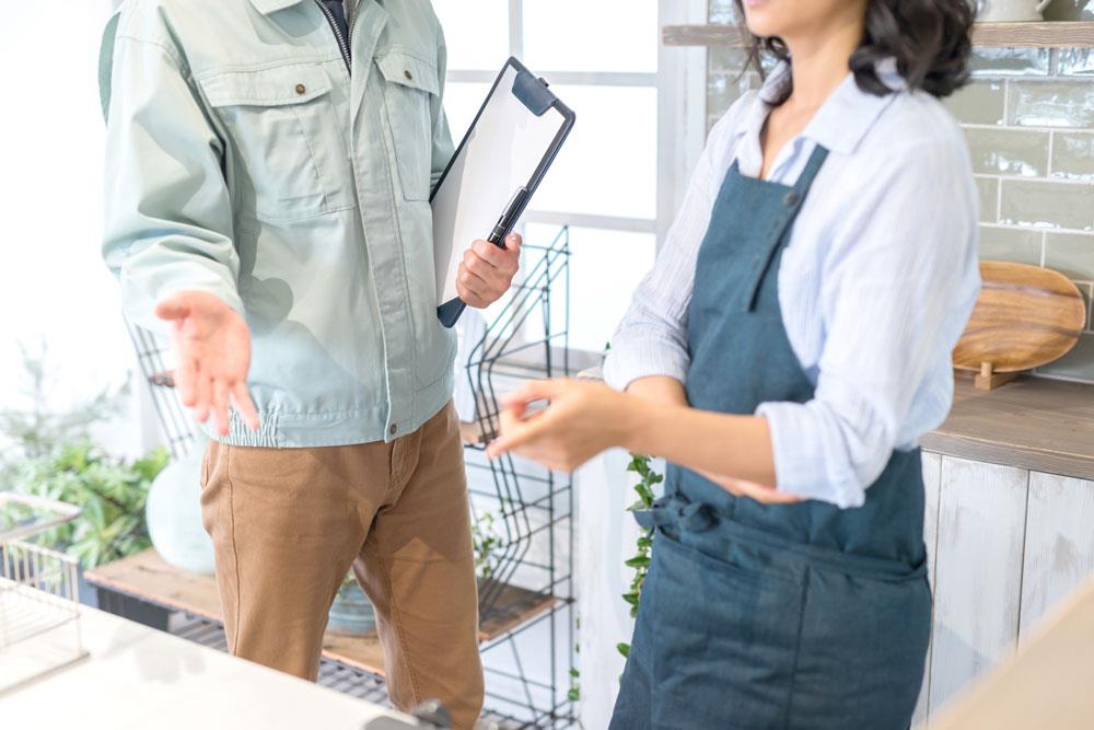 お見積もり内容にご納得いただけましたら、ご契約書類をお持ちしますので、記入をお願いいたします。ご契約書類を記入いただいた後、工事の開始日と竣工日などの工期、入金の期日などを決めさせていただきます。※お客様のご要望次第で、ご契約までにお伺いする回数が増える可能性もあります。